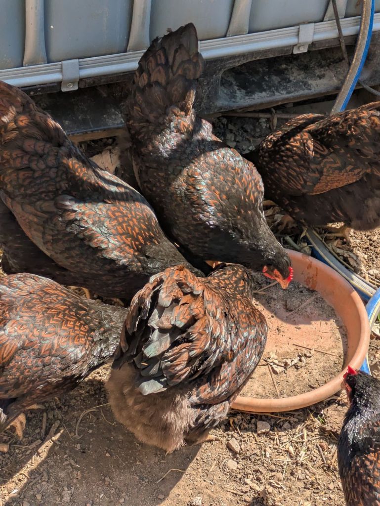 PS: Ich habe ich eine zweite Horde, die aus verschiedenen Rassen besteht und die ich gezielt auf Resilienz und Selbstständigkeit züchte. Meine Barnevelder werden nur deshalb strikt reinrassig gehalten, weil die Menschen sich dies wünschen und ich das respektiere. Die Barnevelder sind also eine sehr gesunde Landrasse, die mir auch hier (unter anderen Rassen) als Grundlage für meine Zucht dient.
